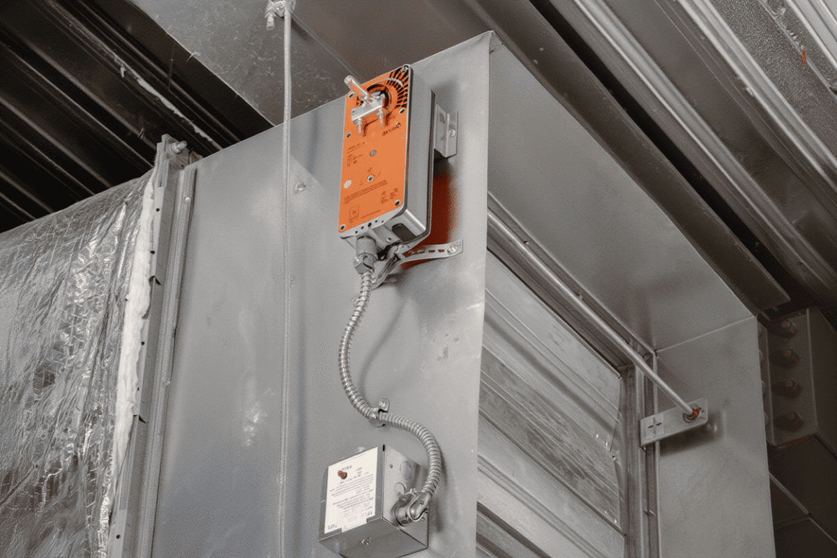- Пружинный возврат. Шкаф постоянно держит привод под напряжением (клапан закрыт). Как только питание снимается (по сигналу тревоги или из-за обрыва кабеля), взведенная пружина мгновенно распахивает заслонку. Это принцип «безопасности при отказе».